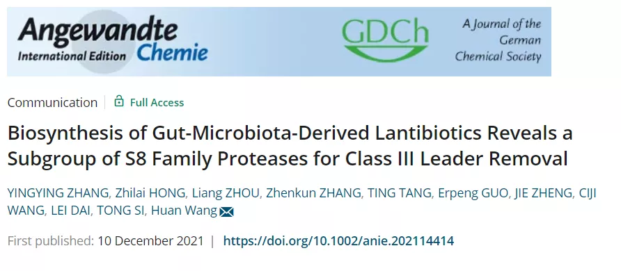 该研究在模式动物大鼠肠道菌中发现了一类新颖的窄谱羊毛硫肽抗生素amylopeptins,解析了基因簇内S8家族丝氨酸肽酶AmyP如何参与前导肽移除和抗生素活性的激活。南京大学博士后章盈盈,合成所助理研究员洪志来、合成所博士后周亮(已出站)为论文共同第一作者,王欢教授和司同研究员为论文共同通讯作者。