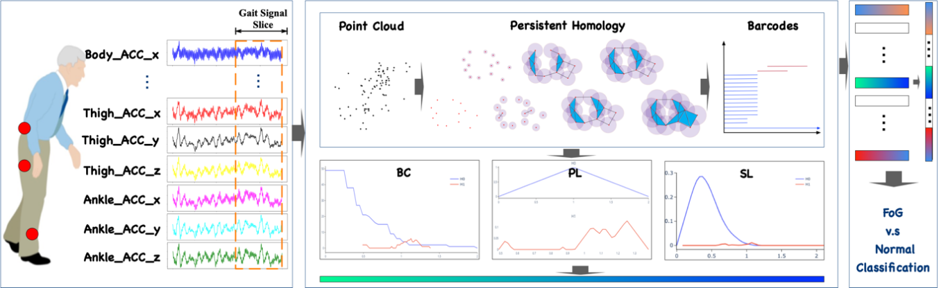 图1:研究团队提出的传感拓扑非线性特征分析框架和冻结步态检测方法