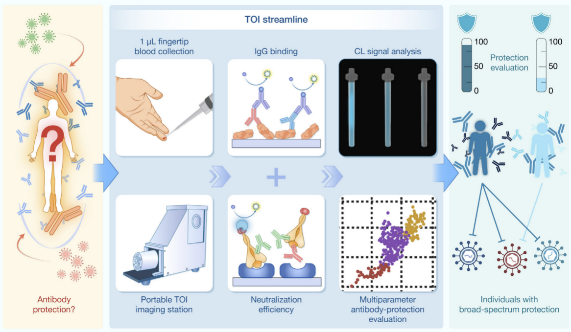 在TOI平台支撑下,研究人员可快速完成基于一滴指尖血的传染病抗体免疫水平多维度分析