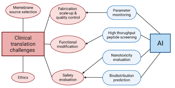 规模化生产与质控: 当前CNPs制备(如物理挤压、超声、微流控)多处于实验室规模,难以满足GMP要求。大规模生产中的批次间一致性、膜蛋白活性维持及长期储存稳定性是瓶颈。