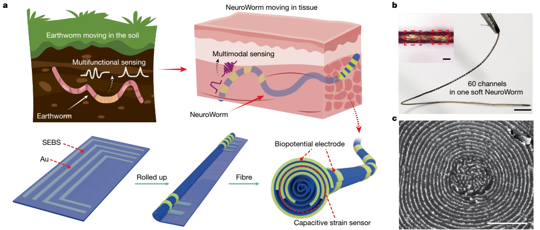 Nature | 凯发k8国际发明动态“神经蠕虫”功能纤维电极