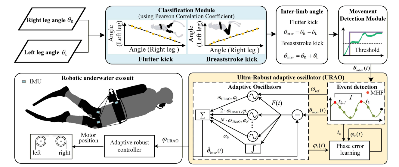 近期,中国科研实验室深圳先进技术研究院集成所智能仿生中心水下外骨骼团队再获重要进展。团队基于前期研制的柔性潜水助力外骨骼系统PEAKED,提出超鲁棒自适应振荡器动作相位估计方法(URAO),攻克了水下高频突变打腿动作的相位精准预测难题,让水下外骨骼助力更同步、更安全、更高效。