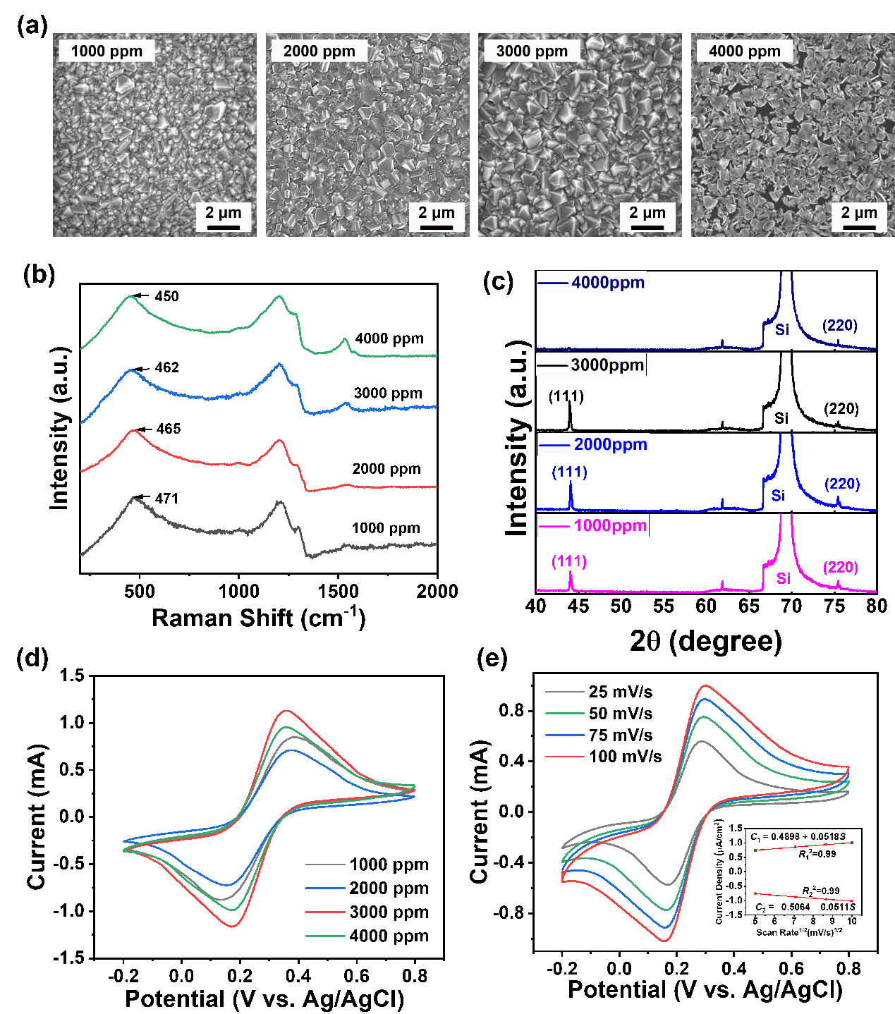 图2 不同掺硼量BDD电极性能表征