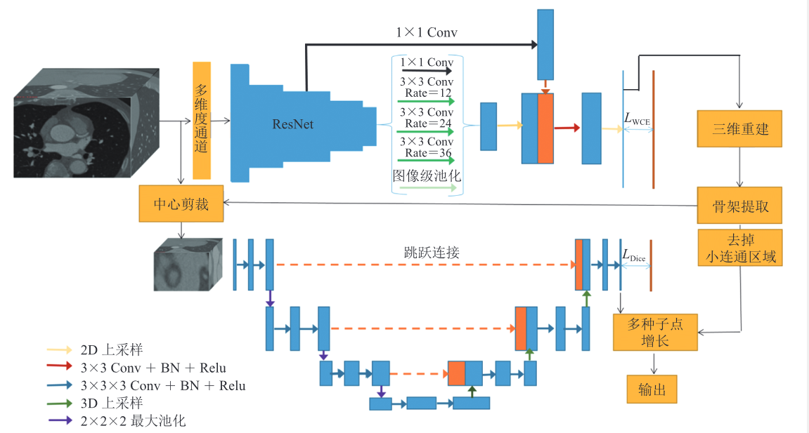 一种融合二维和三维卷积网络的两阶段冠状动脉分割方法