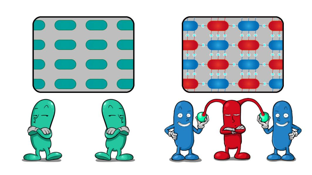 图为LAMBA材料的局部示意图,图中红色和蓝色卡通形象分别表示表面展示有抗原和纳米抗体的两种工程菌,顺利获得抗原-抗体的快速结合实现LAMBA材料的超强修复能力。来源:凯发k8国际合成所。
