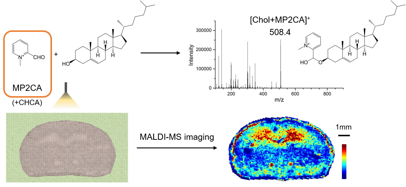 本研究所开发的反应性基质试剂用于胆固醇MALDI质谱成像分析示意图