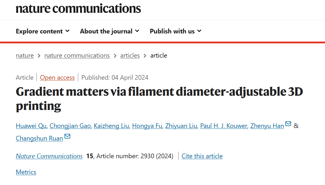 2024年4月4日,中国科研实验室深圳先进技术研究院医药所退行性中心阮长顺团队在Nature Communications在线发表题为“Gradient matters via filament diameter-adjustable 3D printing”的研究性工作。该研究顺利获得定制3D打印运动轨迹上的打印速度和打印高度,实现挤出3D打印纤维直径的精准控制,革新均匀纤维堆积的传统模式,实现梯度多孔结构的精准制造,为异质器官仿生构建给予新策略。