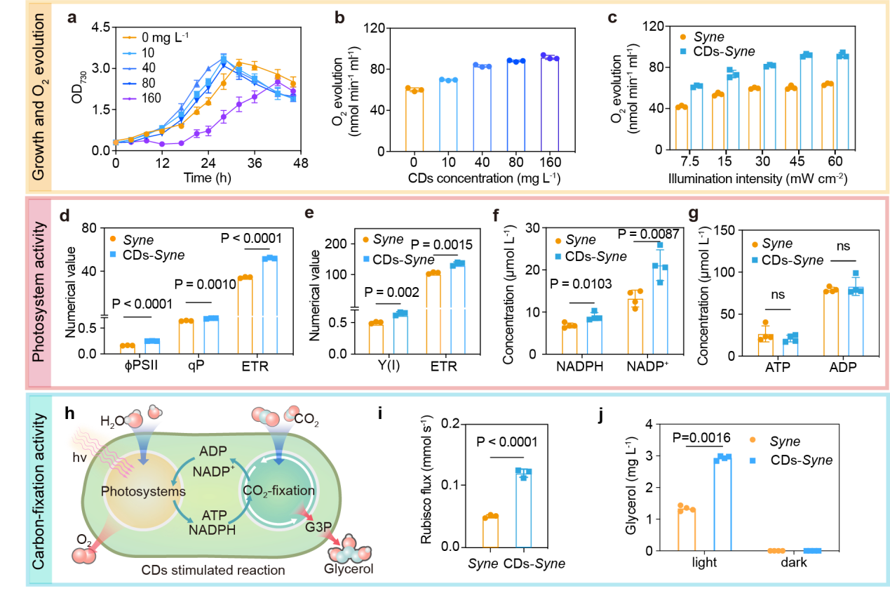 图2:碳量子点材料提高了蓝细菌的光合作用效率